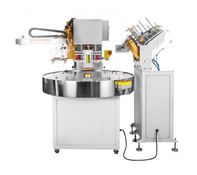 自动高周波机压口香糖包装型号为ZJ-8K-ADRB4的自动转盘高周波机,此机由振嘉高周波机厂家专业生产,此机器质量已通过ISO机器质量检测;我司对客户的样板提供打板打样,传授产品生产整过程工序及提供生产方案。 自动转盘高周波机以圆盘360度旋转,分为四个工作位,即每90度为一个工作位。圆盘装有数字化变频器,通过带动电机控制圆盘转动速度,数字化显示可调节, 并配有自动取料、放纸卡的机械手。